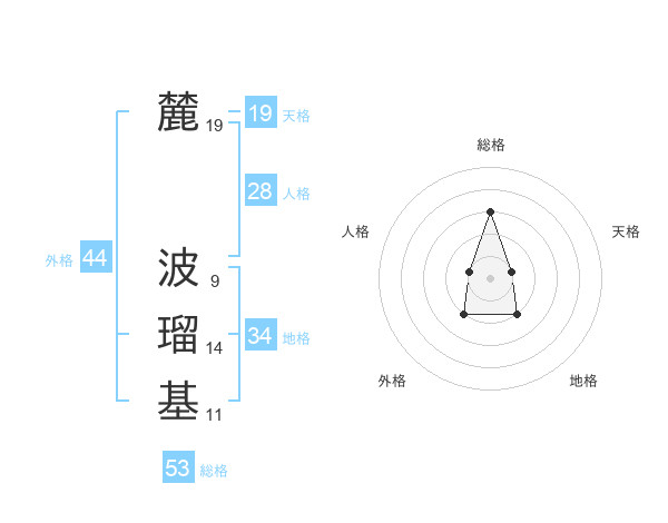 麓 波瑠基さんの外格は44画の2点!