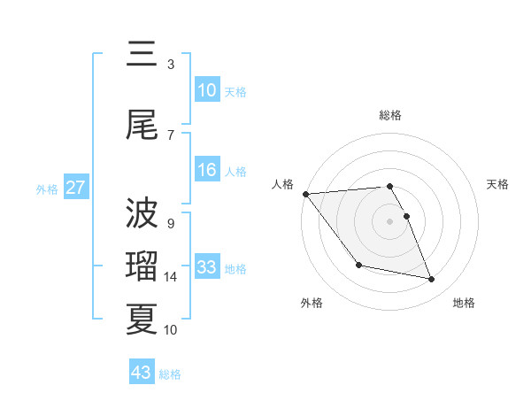 三尾 波瑠夏さんを姓名の画数から五運を鑑定