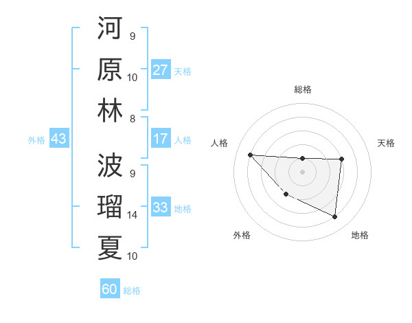 河原林 波瑠夏さんの総格は60画の1点!
