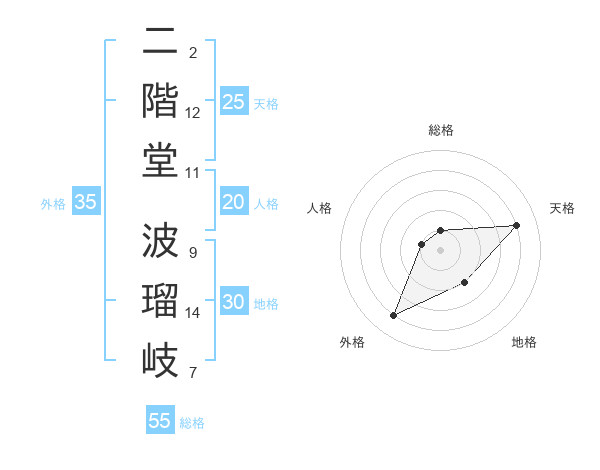 二階堂 波瑠岐さんの外格は35画の4点!