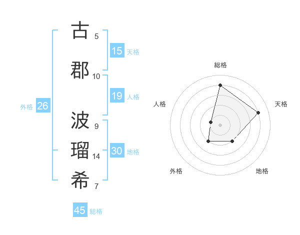 古郡 波瑠希さんの総格は45画の4点!