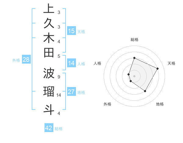 上久木田 波瑠斗さんを姓名の画数から五運を鑑定