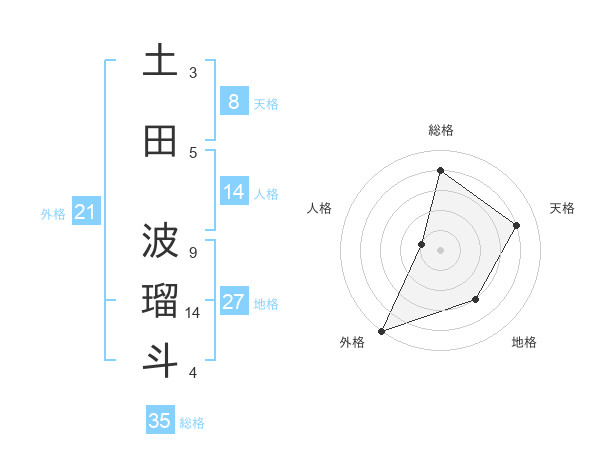 土田 波瑠斗さんの総格は35画の4点!