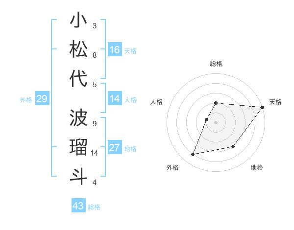 小松代 波瑠斗さんを姓名の画数から五運を鑑定