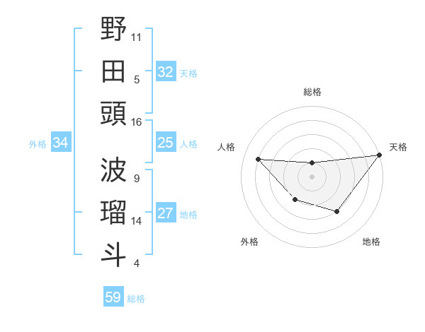 野田頭 波瑠斗さんを姓名の画数から五運を鑑定
