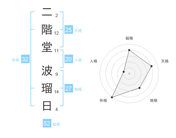 二階堂 波瑠日さんの天格は25画の4点!