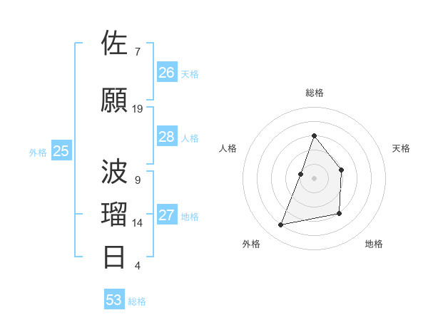 佐願 波瑠日さんを姓名の画数から五運を鑑定