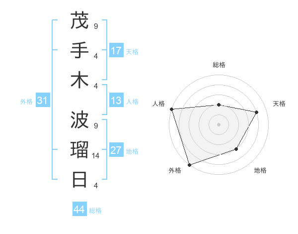 茂手木 波瑠日さんを姓名の画数から五運を鑑定