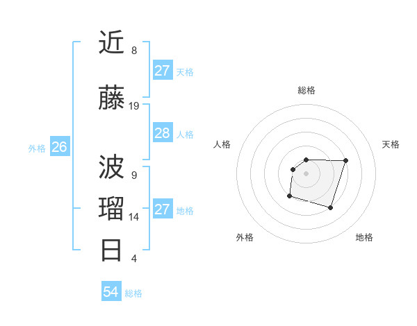 近藤 波瑠日さんの総格は54画の1点