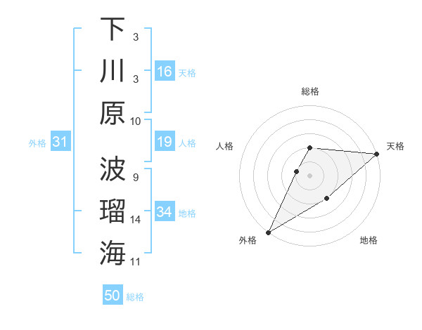 下川原 波瑠海さんを姓名の画数から五運を鑑定