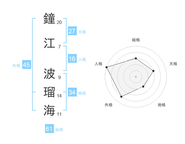 鐘江 波瑠海さんの総格は61画の3点
