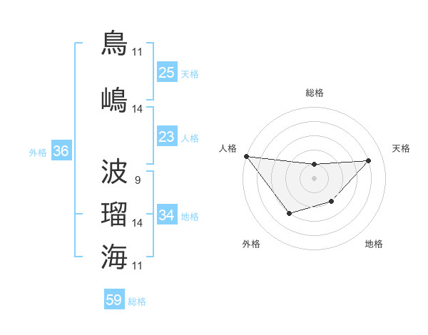 鳥嶋 波瑠海さんの総格は59画の1点!