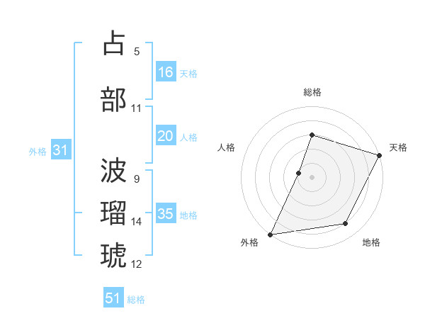 占部 波瑠琥さんの総格は51画の3点!