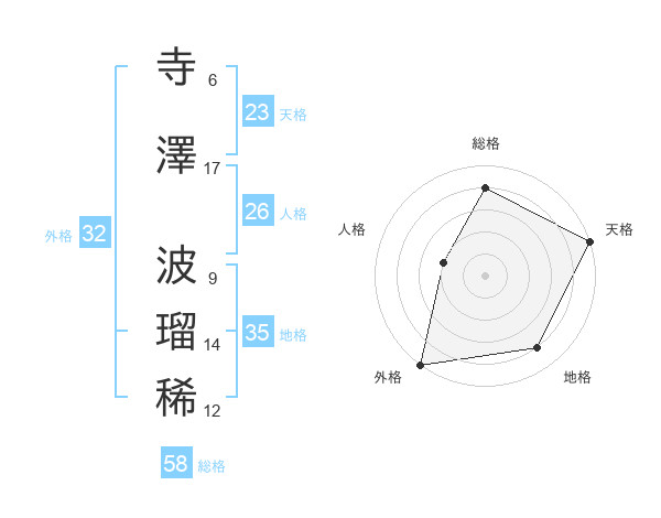 寺澤 波瑠稀さんを姓名の画数から五運を鑑定