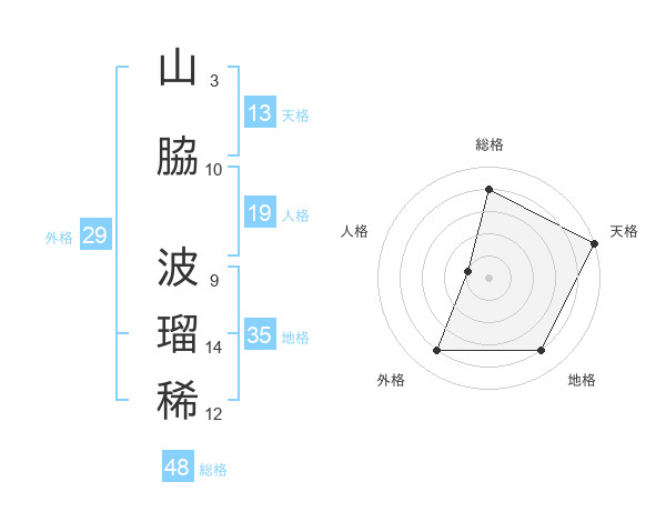 山脇 波瑠稀さんの天格は13画の5点