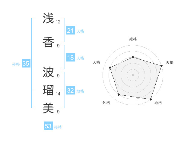 浅香 波瑠美さんの総格は53画の3点