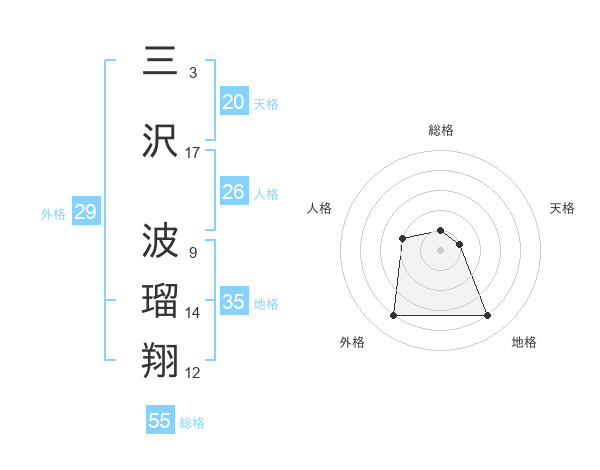 三沢 波瑠翔さんを姓名の画数から五運を鑑定