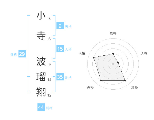 小寺 波瑠翔さんを姓名の画数から五運を鑑定