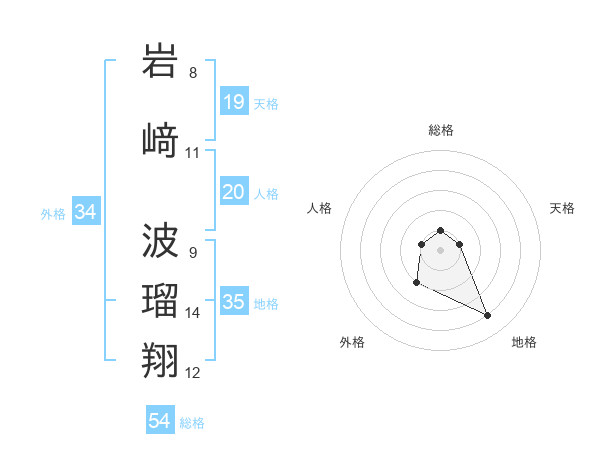 岩﨑 波瑠翔さんの総格は54画の1点!