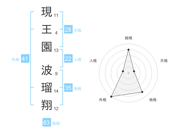 現王園 波瑠翔さんを姓名の画数から五運を鑑定