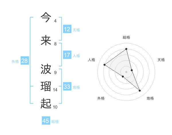 今来 波瑠起さんを姓名の画数から五運を鑑定