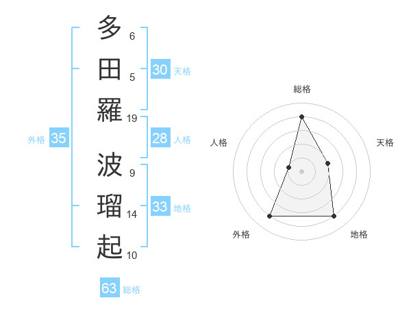 多田羅 波瑠起さんを姓名の画数から五運を鑑定