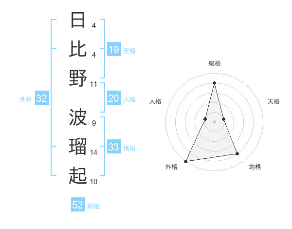 日比野 波瑠起さんを姓名の画数から五運を鑑定