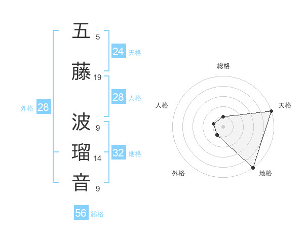 五藤 波瑠音さんの天格は24画の5点!