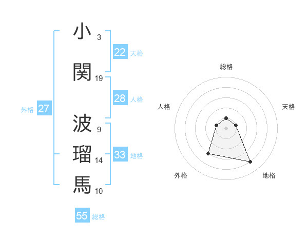 小関 波瑠馬さんを姓名の画数から五運を鑑定