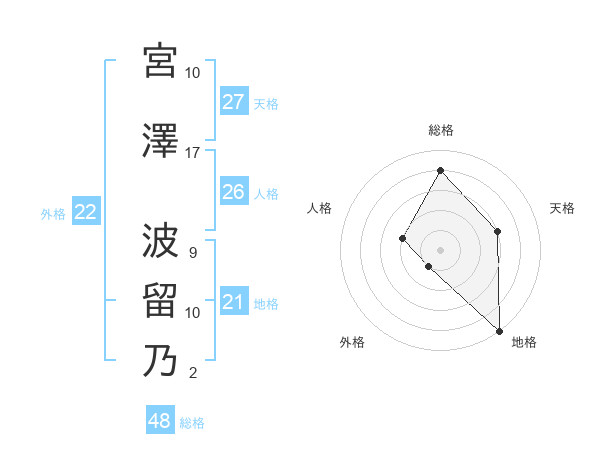 宮澤 波留乃さんを姓名の画数から五運を鑑定