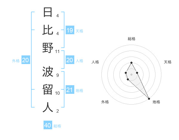 日比野 波留人さんを姓名の画数から五運を鑑定