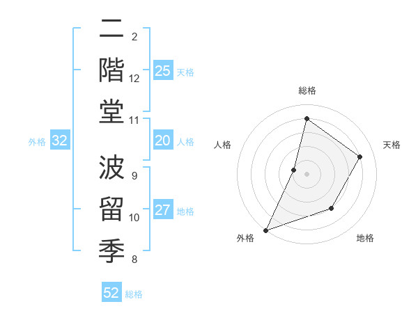 二階堂 波留季さんを姓名の画数から五運を鑑定