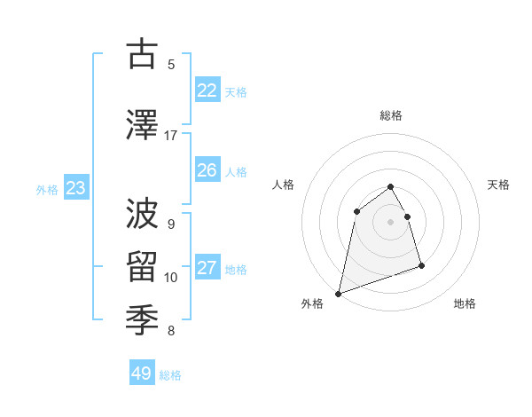古澤 波留季さんの外格は23画の5点!