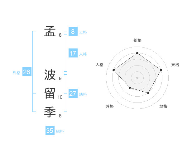 孟 波留季さんの総格は35画の4点!