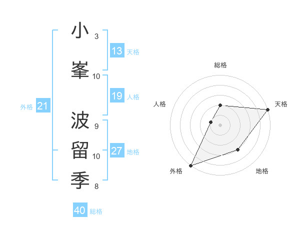 小峯 波留季さんを姓名の画数から五運を鑑定