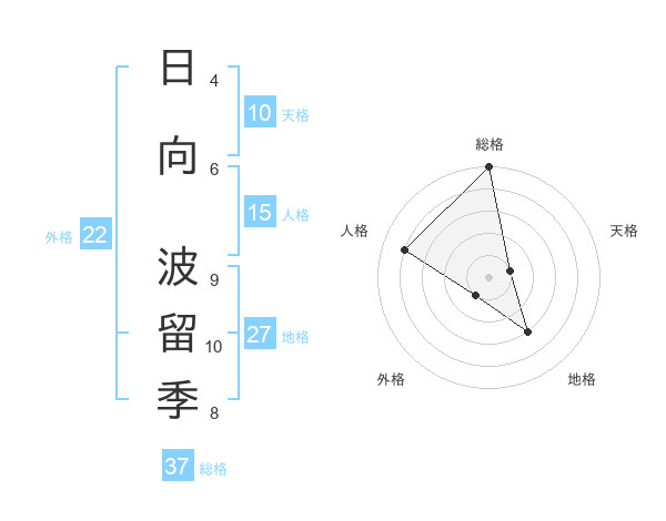 日向 波留季さんの総格は37画の5点