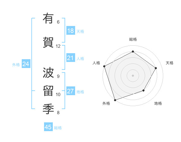 有賀 波留季さんを姓名の画数から五運を鑑定