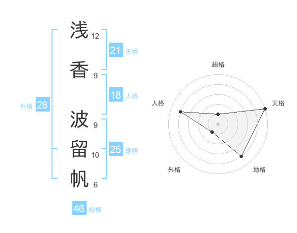 浅香 波留帆さんの天格は21画の5点!