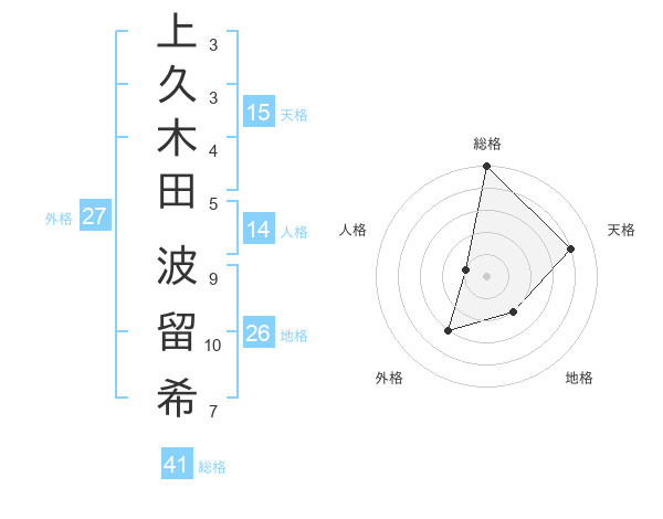 上久木田 波留希さんの天格は15画の4点!