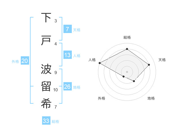下戸 波留希さんを姓名の画数から五運を鑑定