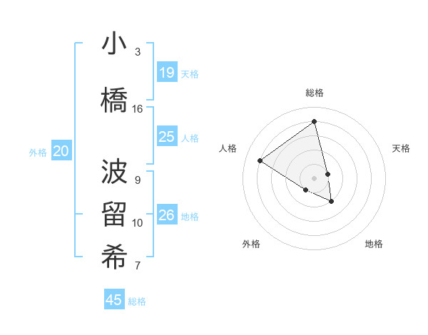 小橋 波留希さんを姓名の画数から五運を鑑定