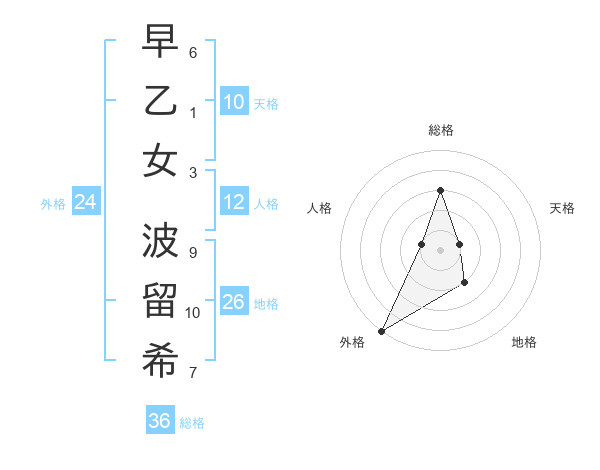 早乙女 波留希さんを姓名の画数から五運を鑑定