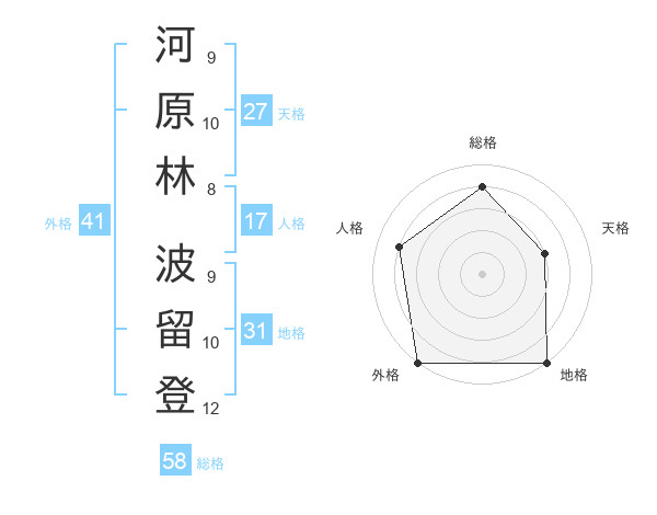 河原林 波留登さんの総格は58画の4点!