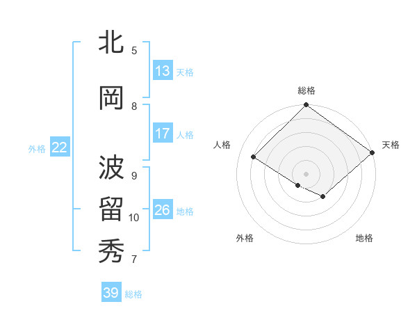 北岡 波留秀さんを姓名の画数から五運を鑑定