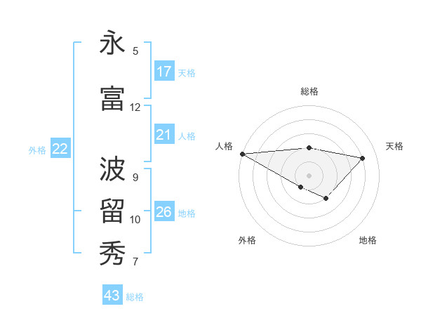 永富 波留秀さんの総格は43画の2点!