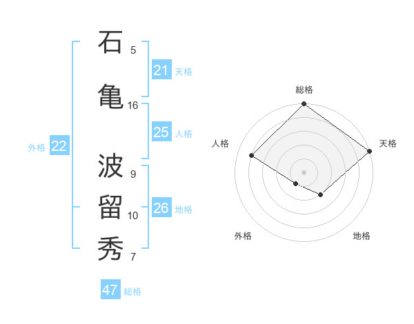 石亀 波留秀さんを姓名の画数から五運を鑑定