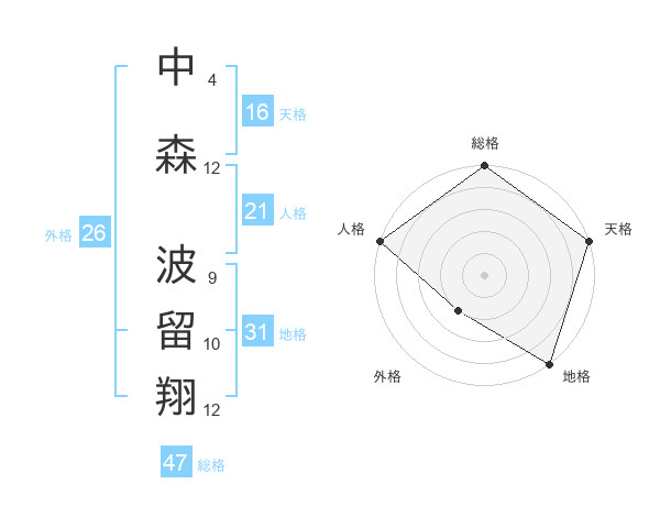 中森 波留翔さんを姓名の画数から五運を鑑定