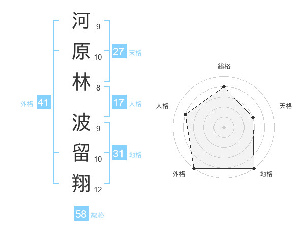 河原林 波留翔さんを姓名の画数から五運を鑑定