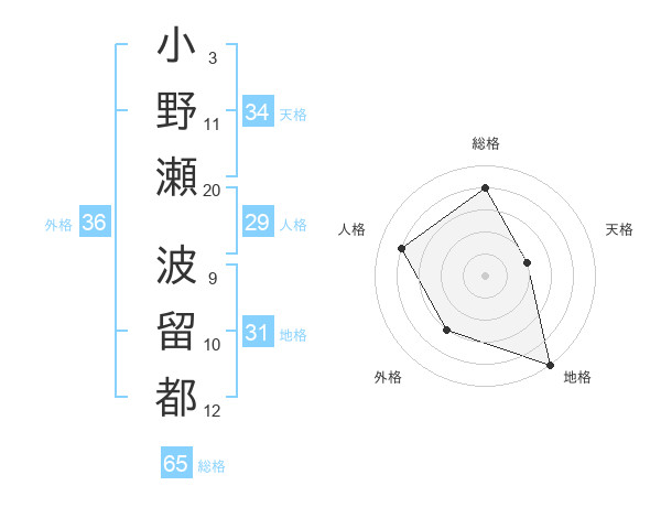 小野瀬 波留都さんを姓名の画数から五運を鑑定
