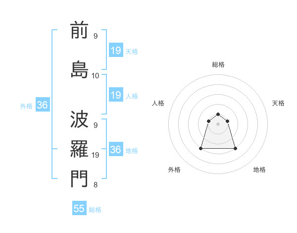 前島 波羅門さんの総格は55画の1点!